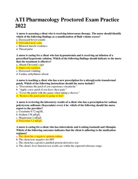 Online PDF ATI PHARMACOLOGY PROCTORED EXAM QUESTIONS Epub Gutenberg